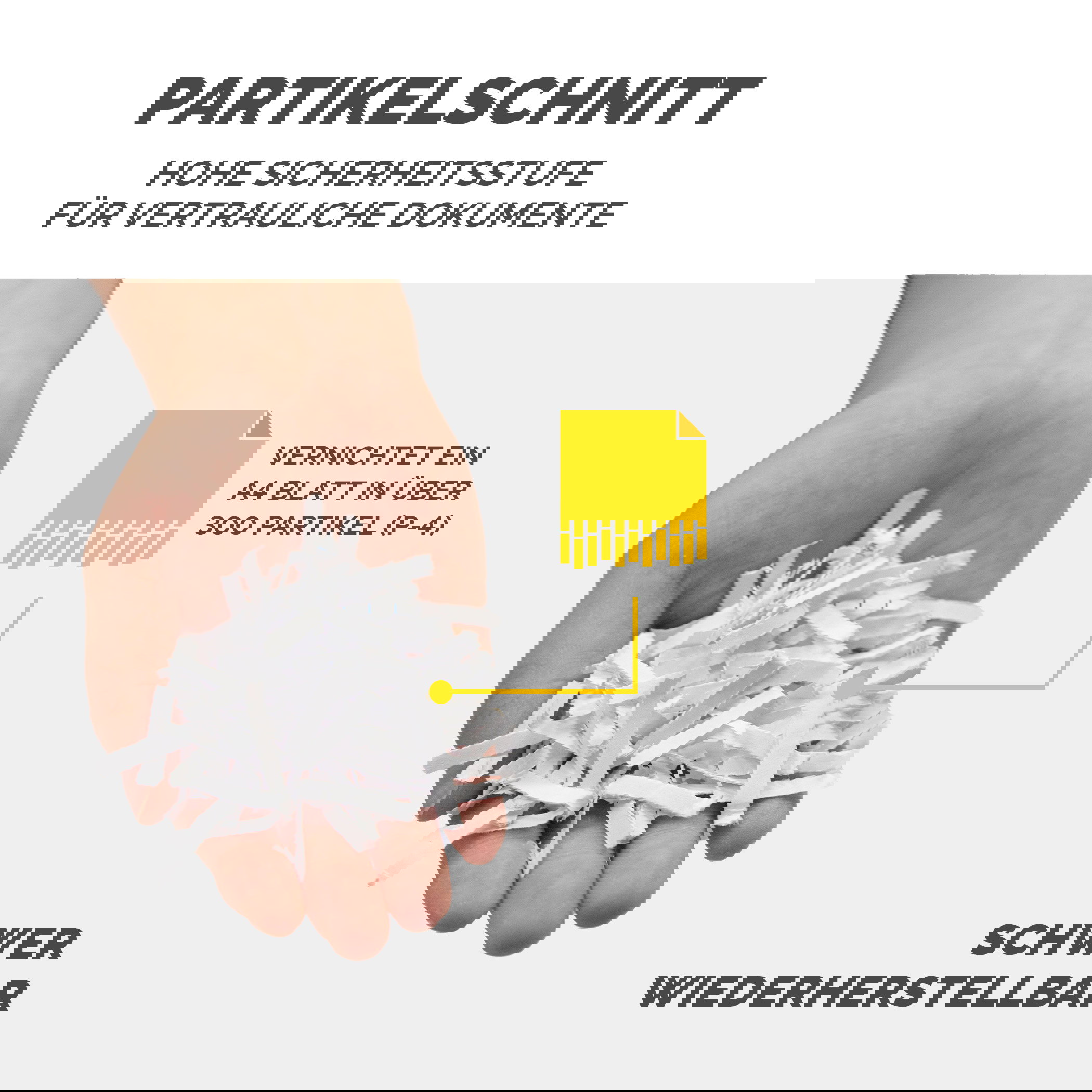 | Vernichtet: | Papier, Heftklammern, Büroklammern, Kreditkarten |
