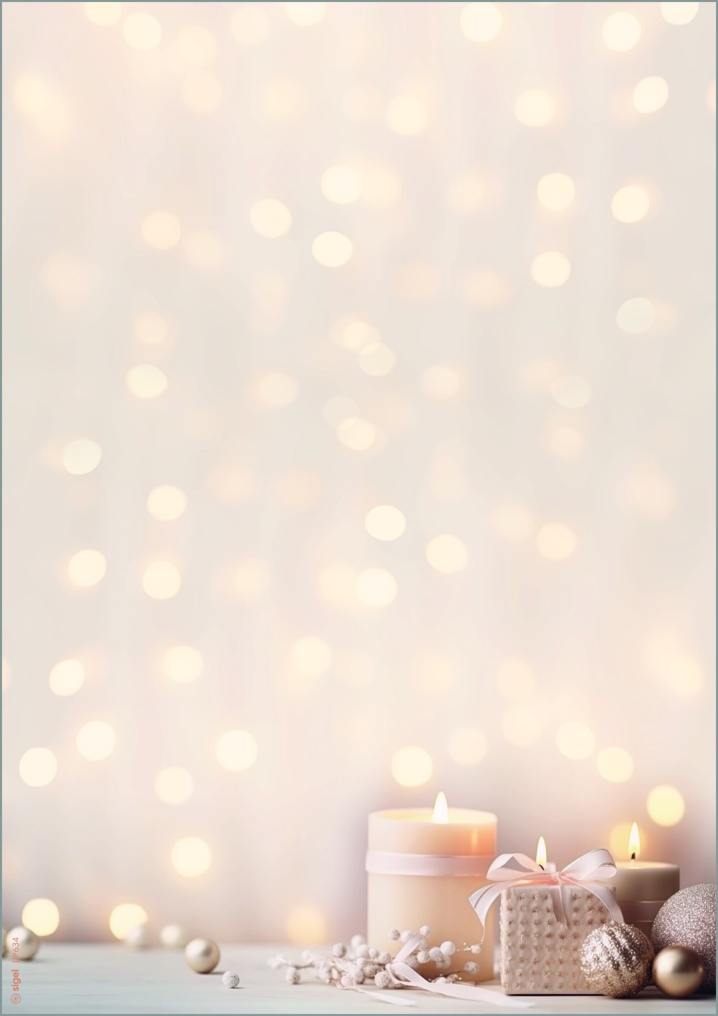 Für besondere Weihnachtsgrüße, die Sie individuell bedrucken und beschriften können. Mit einmaligem Design und ruck-zuck bedruckt: Weihnachts-Motiv-Papier "Golden Glow" (Motiv: Kerzen in beige/chamois/creme/gold) im Format A4 (Feinpapier, 90 g/m², 100 Blatt). Ihre Produktvorteile:Made in GermanyStimmungsvolles Design, ansprechend und modernFSC-zertifiziert: hochwertiges, umweltfreundliches Papier aus verantwortungsvollen QuellenFür alle Inkjet-, Laser-Drucker und Kopierer geeignet, einfach zu gestalten mit der SIGEL Wordvorlage (Download auf Hersteller-Website) oder per Hand beschriftbarWeihnachtsbriefpapier für Ihre Weihnachtspost, als weihnachtliches Angebotsschild, Einladung, Weihnachtsmenü, Menü- oder SpeisekarteÜberraschen Sie Geschäftspartner, Mitarbeiter, Kollegen oder auch Freunde und Familie mit exklusiven Grüßen zur Weihnachtszeit. Individuell und unkompliziert bedruckbar - für Ihre persönliche und einzigartige Weihnachtspost im Handumdrehen. Keine Abhängigkeit von Druckereien, geringe Auflagen ganz nach Bedarf - und das in Premiumqualität. Lieferumfang: 1x Weihnachts-Motiv-Papier DP634, 100 Blatt