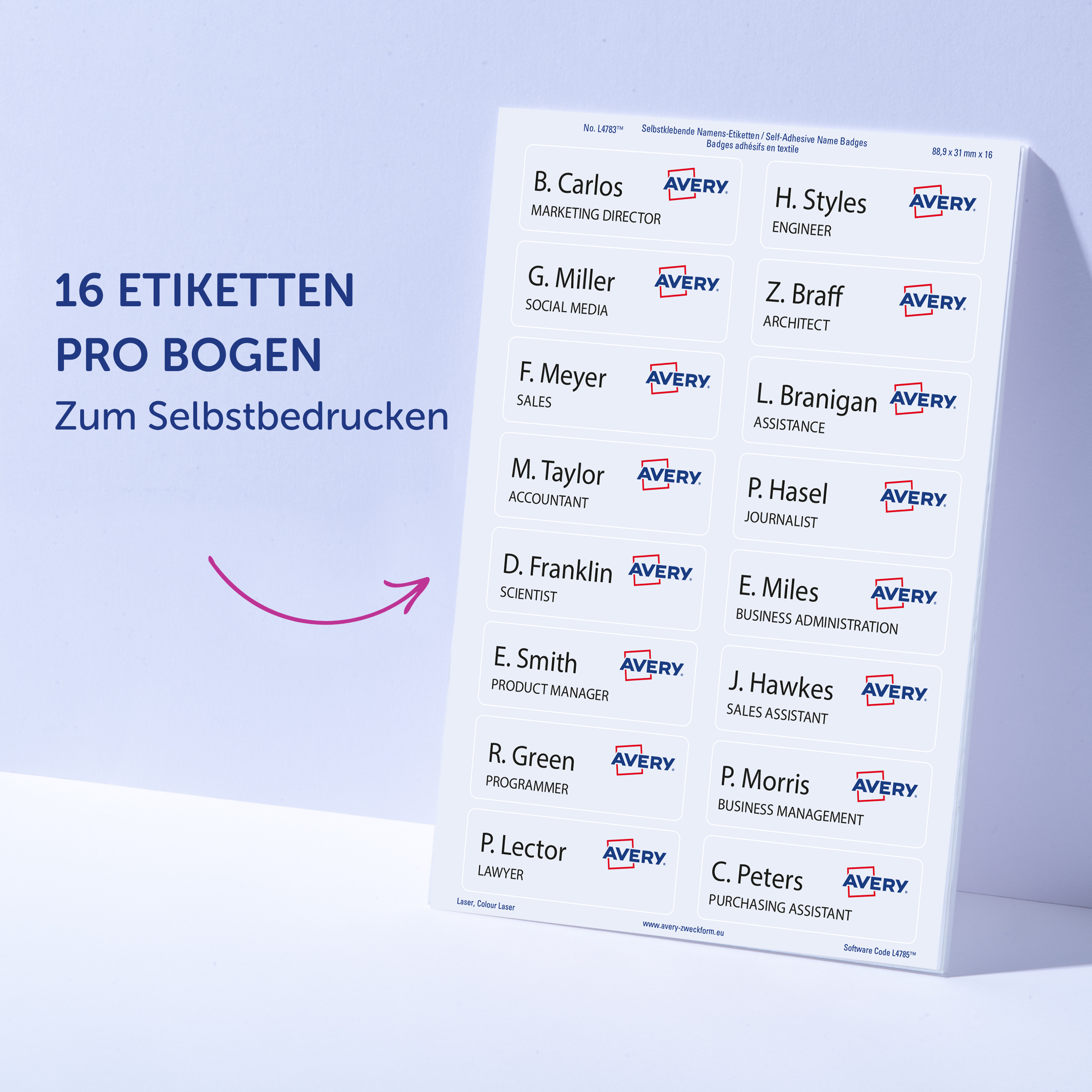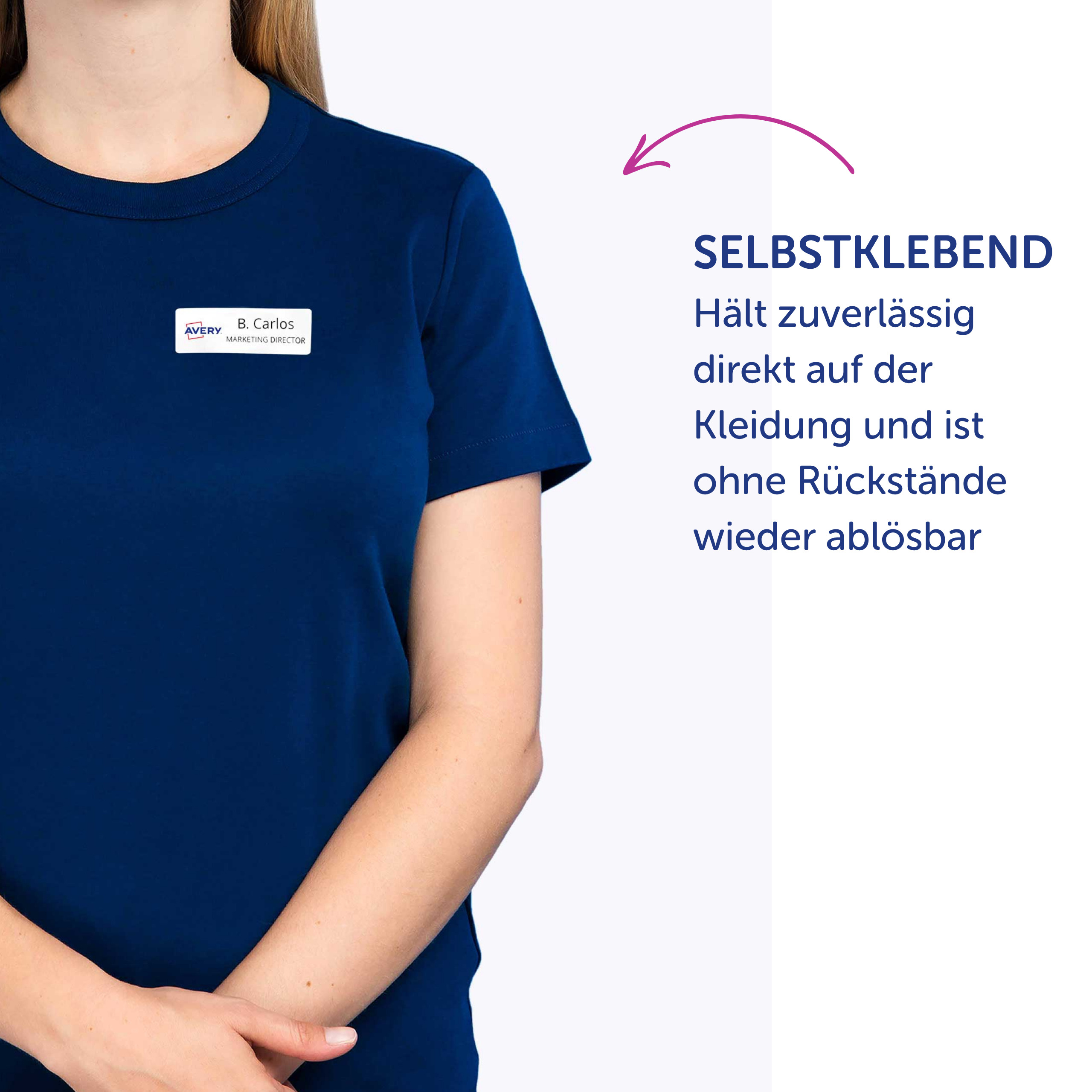 Die Namens-Etiketten sind die perfekte Alternative zu Plastikschildern mit Nadel oder Clip. Die Namensschilder aus Acetatseide haften zuverlässig auf Kleidung und Textilien und lassen sich rückstandsfrei wieder ablösen. Die Rückseiten-Stanzung der Namensschilder erlaubt das einfache Heraustrennen der Namens-Etiketten samt Trägerfolie für eine spätere Verwendung. Die Textil-Etiketten sind nicht geeignet für Leder, Seide, Samt und andere empfindliche Textilien. Die Namens-Etiketten bieten einen garantiert staufreien Druckerdurchlauf auf allen gängigen Laser-Druckern. So arbeiten Sie effizient wie stressfrei und schaffen sich wertvolle Zeit für die wirklich wichtigen Dinge.