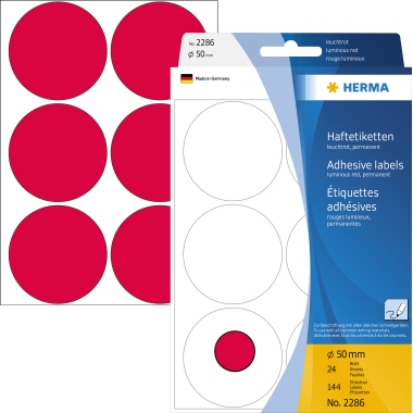 Produktbeschreibung Etikett Herma 2286 50mm leuchtrot