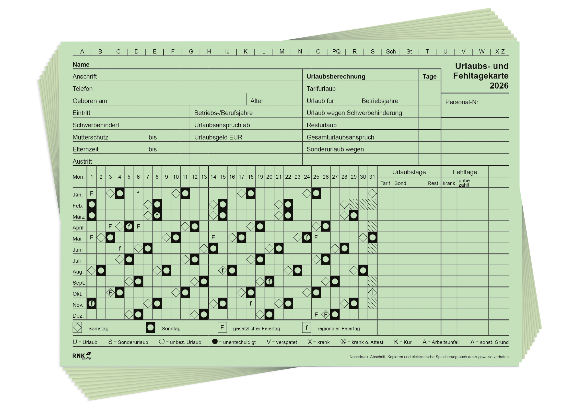 Fehltagekarte 2026 RNK 2900 A5 quer Pack a 10 Stück
