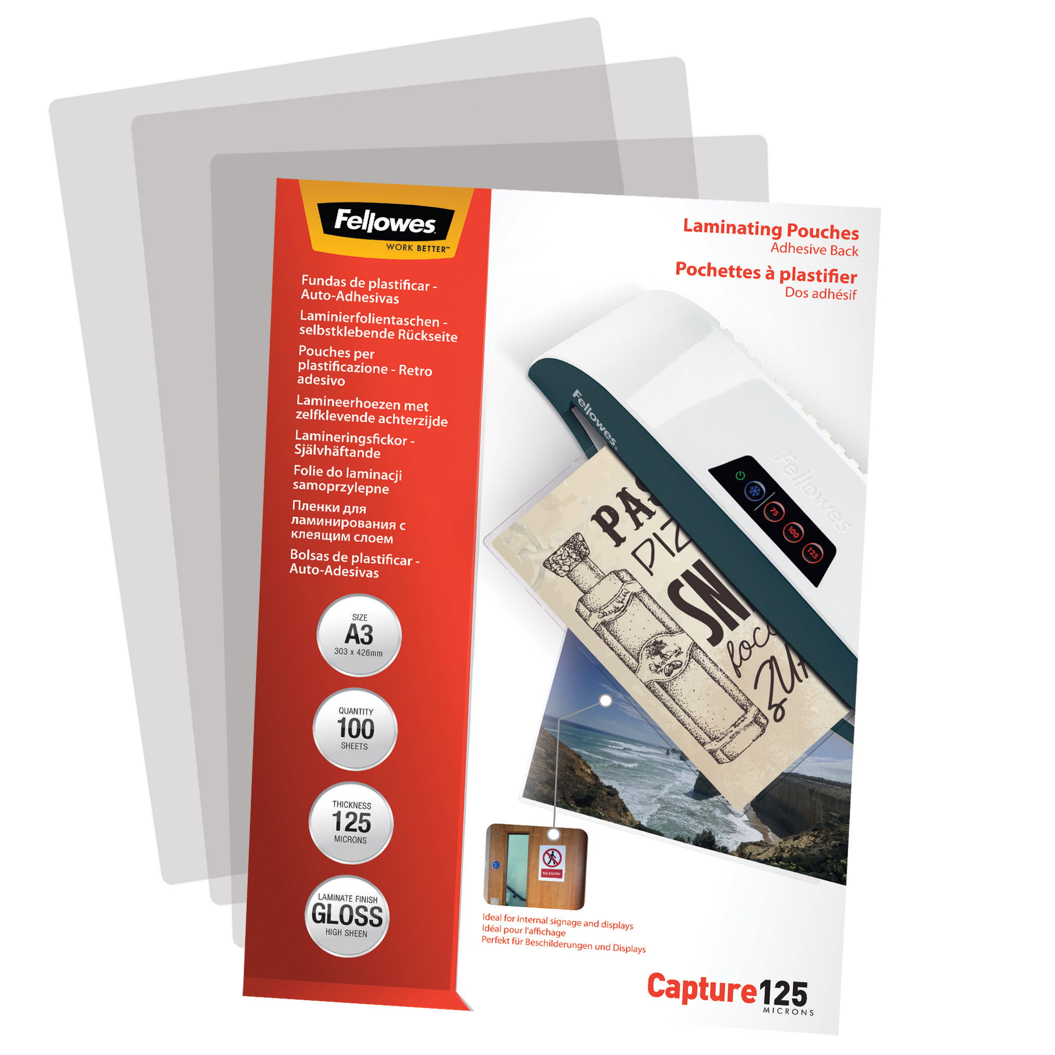 Produktbeschreibung Folientasche FELLOWES A3 303X426mm 125my glänzend 100 St/Pack selbstklebend