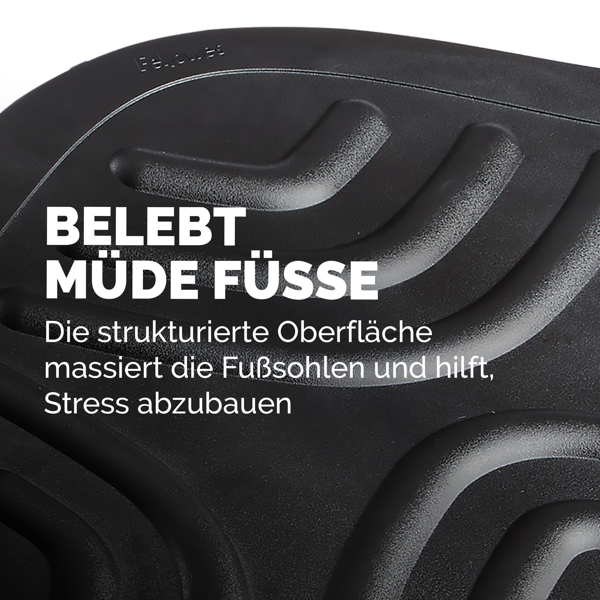 Wippende Bewegung verbessert die Blutzirkulation und vermindert Ermüdungserscheinungen. Einfache Höhenverstellung durch Umdrehen der Fußwippe (65mm und 95mm). Einzigartiges Gewinde-Design verhindert Wegrutschen der Fußstütze. Massagenoppen an der Oberfläche beleben müde Füße und verringern arbeitsbedingten Stress.