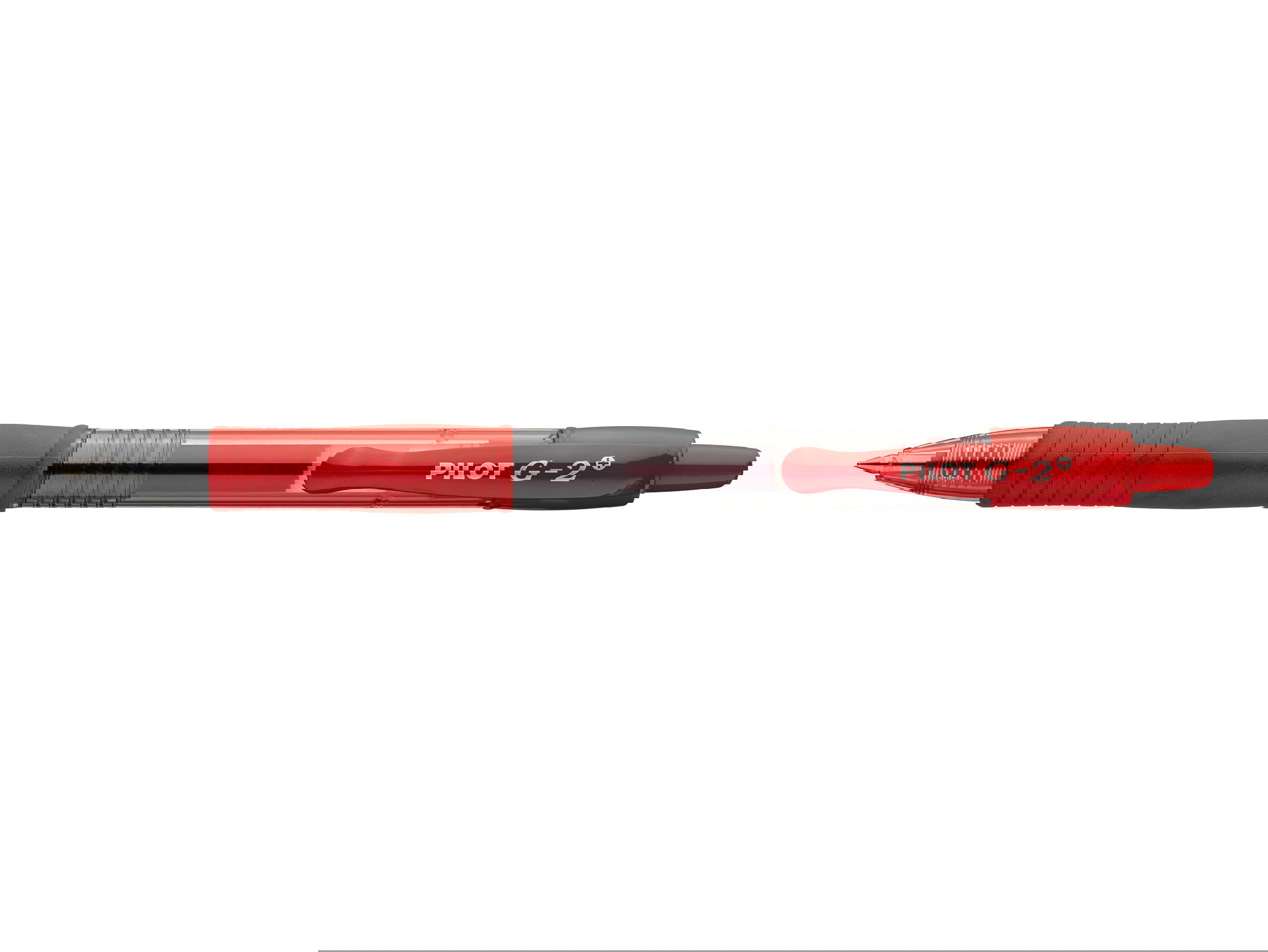 Gelschreiber G-2+-5 mit Druckmechanik. Der Klassiker unter den Gelschreibern wird zum G-2+: längste Schreibleistung von bis zu 1 km*, erhöhter Recyclinganteil von >75% recyceltem Plastik (ohne Nachfüllungen und plastikfreie Komponenten, was 53% des gesamten Produktgewichts ohne Verpackung entspricht). Weiches und angenehmes Schreiben. Mit gummierter Griffzone für rutschsicheren Halt und eine entspannte Schreibhaltung. Besonders stabiler Clip: Rundumfassung am Schaftende schützt vor dem Abbrechen. Edelstahlspitze mit Wolfram-Karbid-Kugel für besonders hohe Druckresistenz und Langlebigkeit. Jederzeit sichtbarer Tintenstand dank transparentem Gehäuse. Mit passender Mine (2616) nachfüllbar. Made in EU - für kurze Transportwege. ClimatePartner-zertifiziertes Produkt: Alle aktuell nicht vermeidbaren CO2-Emissionen werden über Klimaschutzprojekte kompensiert. Kugeldurchmesser: 0,5 mm (F). Strichbreite: ca. 0,3 mm. Griffzone = Schreibfarbe. Schreibfarbe: Rot. *Produkt getestet von einem unabhängigen Labor (SGS) an einem Panel von 7 führenden Geltintenprodukten in Europa, Oktober 2024.