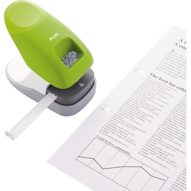Produktbeschreibung Heftgerät Plus Japan 31261 grün klammernlos bis 10 Blatt