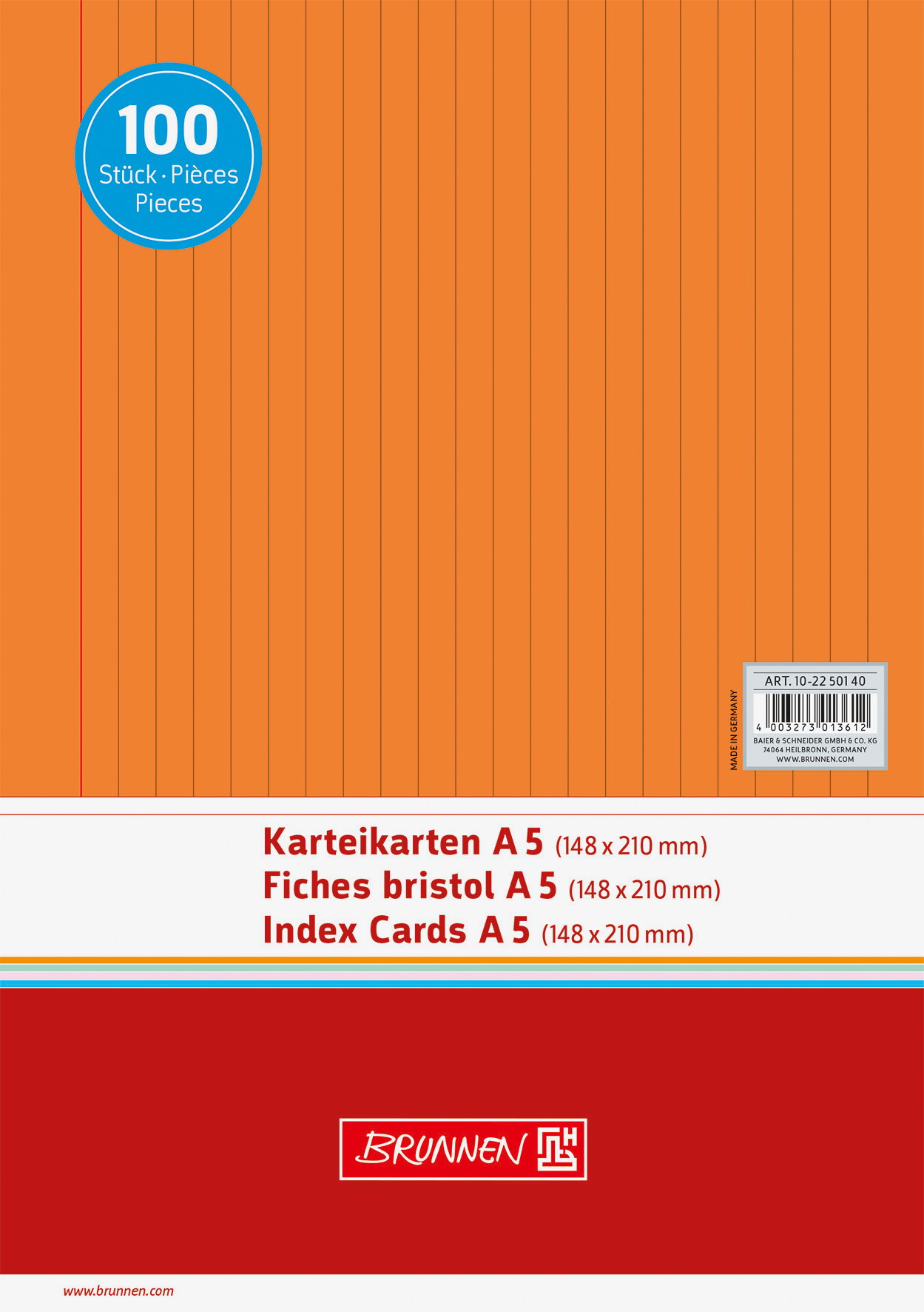 Produktbeschreibung Karteikarten BRUNNEN 22501 A5 liniert orange 100 Stück