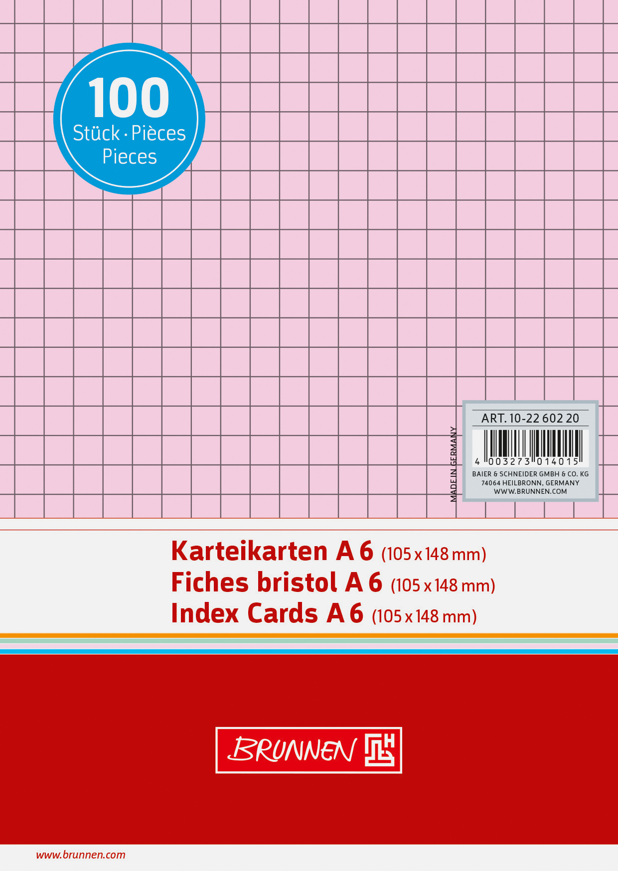 Produktbeschreibung Karteikarten BRUNNEN 22602 A6 kariert rot 100 Stück