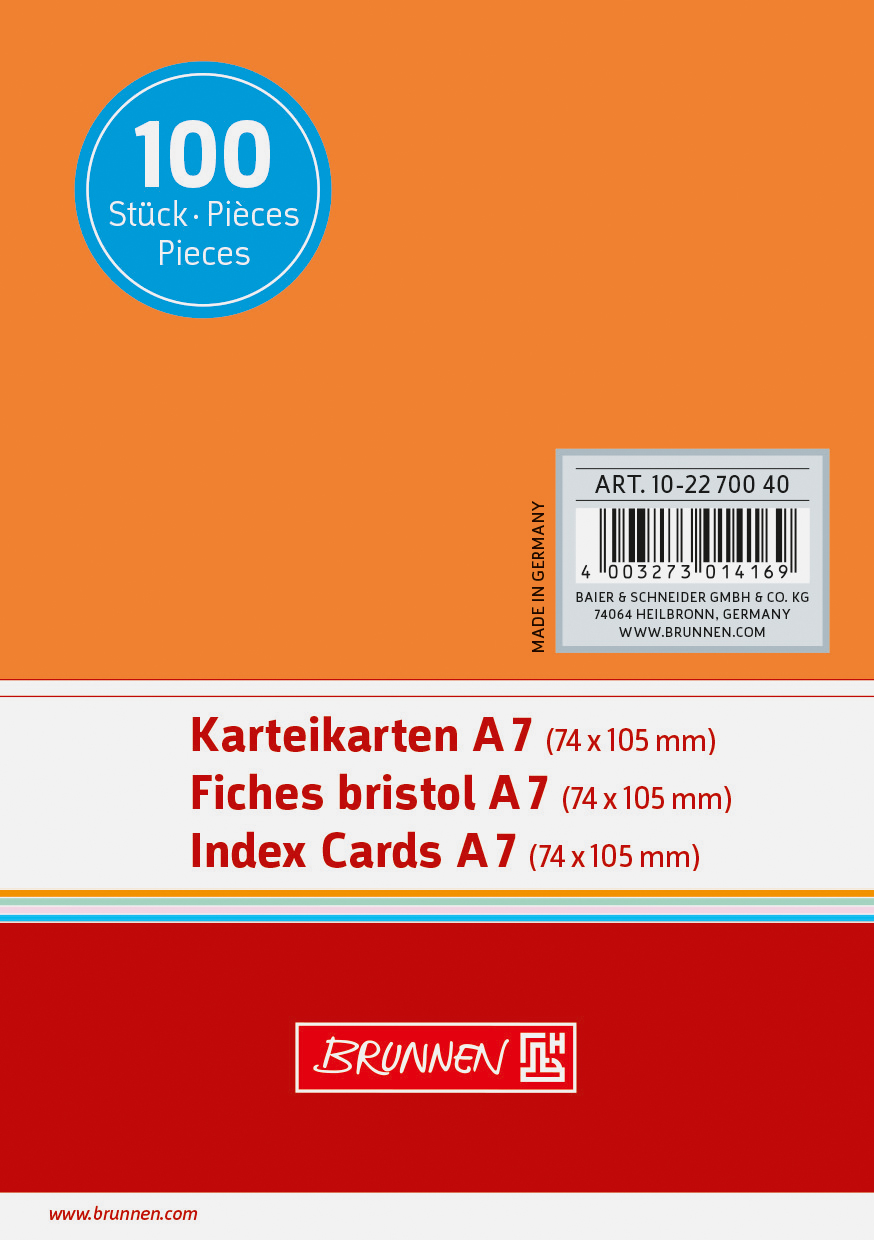 Produktbeschreibung Karteikarten BRUNNEN 22700 A7 unliniert orange 100 Stück