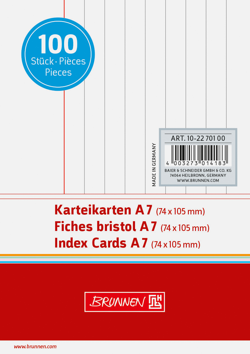 Produktbeschreibung Karteikarten BRUNNEN 22701 A7 liniert weiß 100 Stück