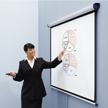 Für die Wand- oder Deckenmontage. Die matte Oberfläche gewährleistet scharfe, detaillierte Bilder, die für alle Anwesenden klar erkennbar sind. Die Leinwand lässt sich leicht wieder in das Gehäuse einfahren, ist dadurch diskret verstaut und besser geschützt. Bei Gebrauch der Leinwand zusammen mit OHP-Projektoren wird die Verwendung des optionalen Wandabstandshalters für eine verzerr freie Bilddarstellung empfohlen.