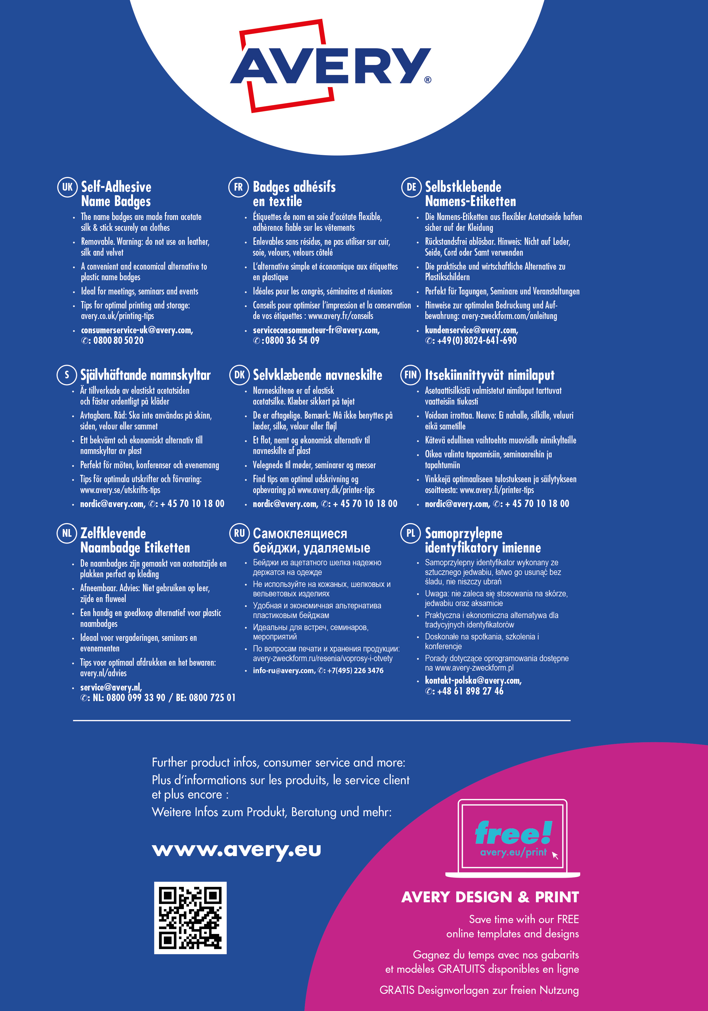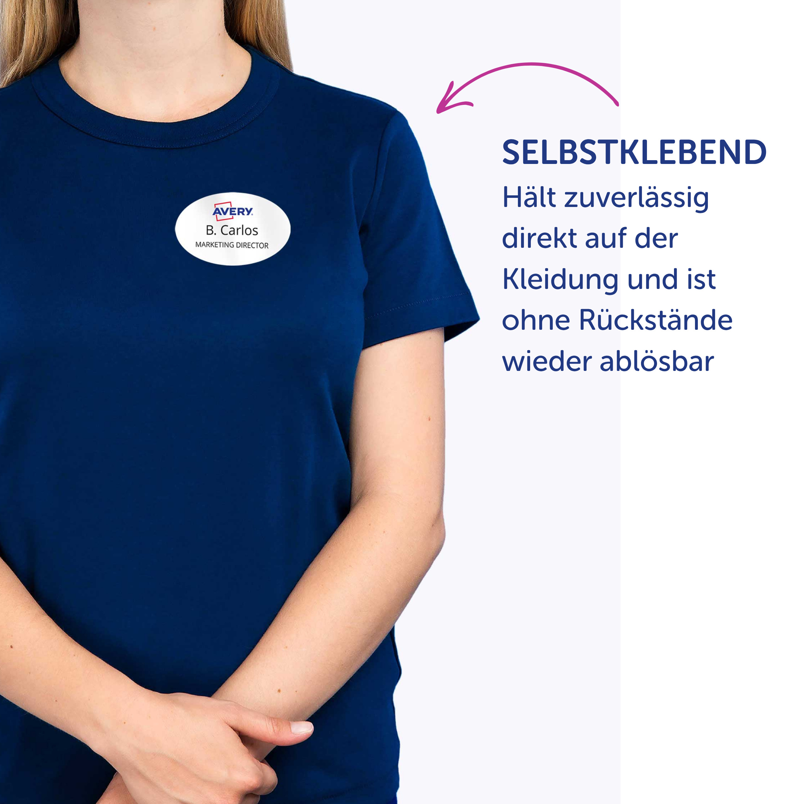 Qualität vom Etiketten-Experten: die selbstklebenden, ablösbaren Namens-Etiketten L4784-20 für Laser-Drucker von Avery Zweckform im Format 63,5 x 29,6 mm erleichtern Ihnen die Organisation von Veranstaltungen, Seminaren und Konferenzen. 540 weiße, bedruckbare Textil-Etiketten auf 20 Bogen. Die rechteckigen Namensschilder sind die perfekte Alternative zu Plastikschildern mit Nadel oder Clip. Die Namensschilder aus Acetatseide haften zuverlässig auf Kleidung und Textilien und lassen sich rückstandsfrei wieder ablösen. Die Rückseiten-Stanzung der Namensschilder erlaubt das einfache Heraustrennen der Namens-Etiketten samt Trägerfolie für eine spätere Verwendung. Die Textil-Etiketten sind nicht geeignet für Leder, Seide, Samt und andere empfindliche Textilien. Die Namens-Etiketten bieten einen garantiert staufreien Druckerdurchlauf auf allen gängigen Laser-Druckern. So arbeiten Sie effizient wie stressfrei und schaffen sich wertvolle Zeit für die wirklich wichtigen Dinge. Ideen drucken - einfach & professionell: mit Etiketten von Avery Zweckform können Sie den kostenlosen Online Etiketten-Designer unter www.avery.eu/print nutzen. Gestalten Sie Ihr Etikett mit der Software komplett selbst, verwenden Sie eine der Design-Vorlagen zu zahlreichen Themen, die Sie individuell anpassen können oder laden Sie Ihr fertiges Design hoch und drucken anschließend standgenau aus. So schnell und einfach sorgen Sie für einen professionellen Auftritt. Think & Care - Avery Zweckform ist seit 2020 klimaneutral: die Treibhausgasemissionen des Standortes werden durch zertifizierte Klimaschutzprojekte ausgeglichen. Schon seit 2014 wird ausschließlich Ökostrom/-gas verwendet. Forschung, Entwicklung, Produktion, Logistik und Verwaltung am Firmenstandort in Oberlaindern/Bayern garantieren höchste Qualitäts- und Umweltstandards sowie kurze Lieferwege. Die Etiketten aus PVC-freier Acetatseide werden klimaneutral hergestellt, die Emissionen des Materials werden kompensiert. Made in Germany.
