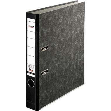 Produktbeschreibung Ordner Falken 11286549 A4 50mm schwarz Wolkenmarmor, Einsteckschild, recycling