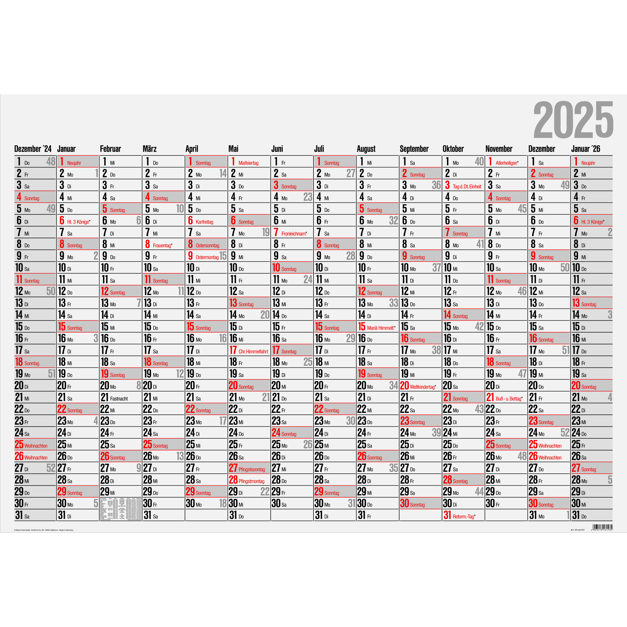 Produktbeschreibung Plakatkalender 7033660 98x68,5cm 1S/14M Druckfarbe: Schwarz/rot, Dezember Vorjah