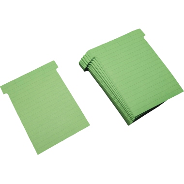 T-Karten zur Beschriftung per Hand. Die Lieferung erfolgt in einer Spenderpackung, die in den untersten Schlitz der Tafelreihe eingehängt werden kann.