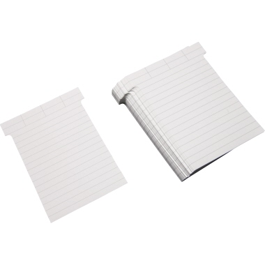 T-Karten zur Beschriftung per Hand. Die Lieferung erfolgt in einer Spenderpackung, die in den untersten Schlitz der Tafelreihe eingehängt werden kann.